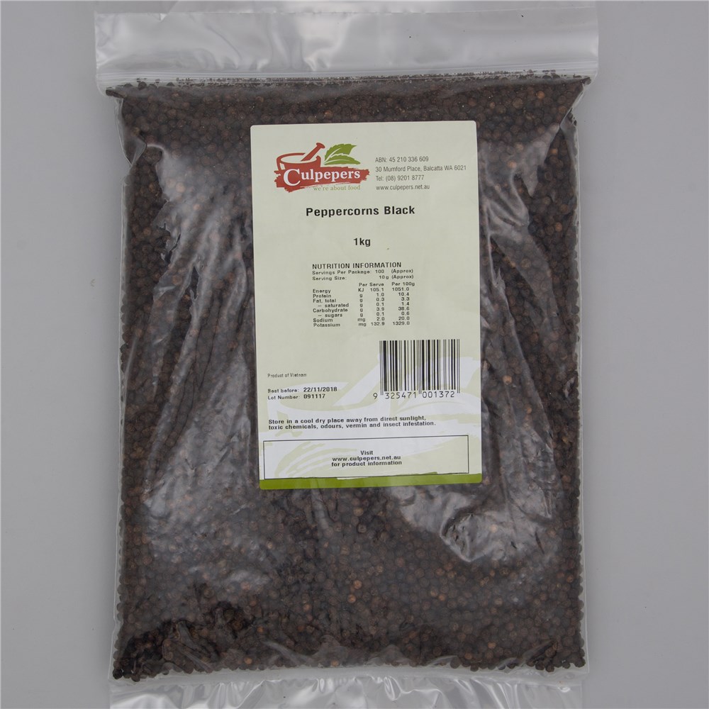 PEPPERCORN BLACK 1KG(10) #PEPB1 CULPEPERS