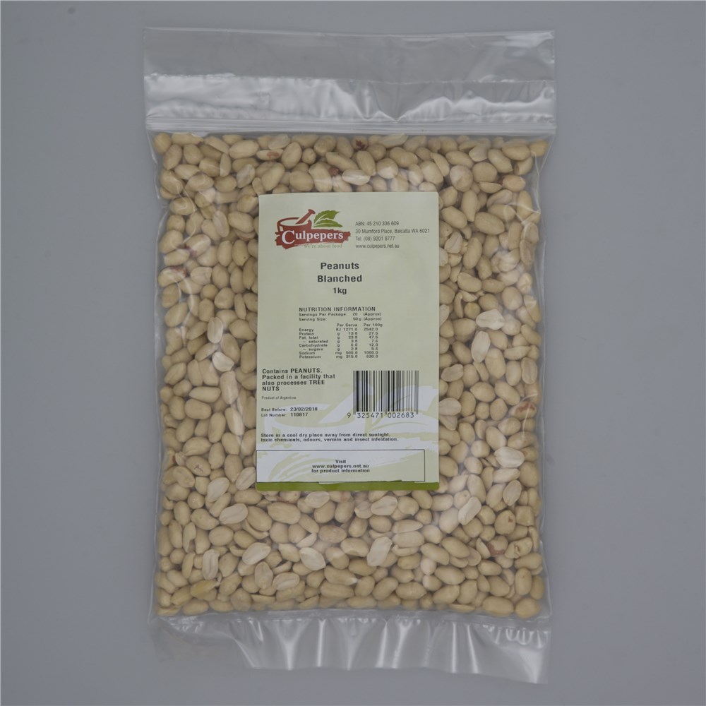 PEANUTS RAW BLANCHED 1KG(10) #PNUTBLCH1 CULPEPERS