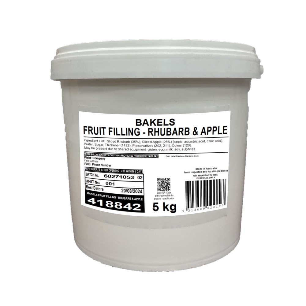 • FILLING APPLE & RHUBARB 5KG #418842 BAKELS